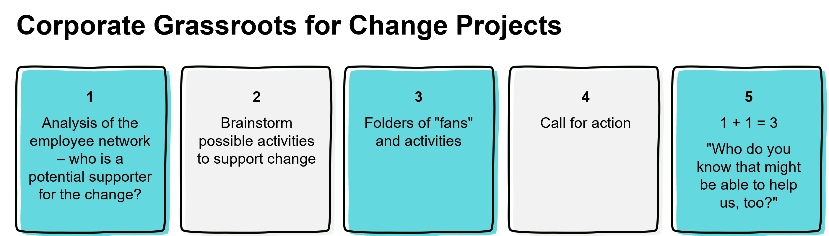 In the U.S., this kind of mobilization strategy is already an integral part of successful corporate cultures and is known as a corporate grassroots strategy. Corporate grassroots refers to the creation of a corporate fan club, an organization of people who support the company's cause out of a sense of deep conviction. And like every company, every change has its fans. A corporate grassroots strategy makes it easy to activate and organize the commitment of passionate supporters.